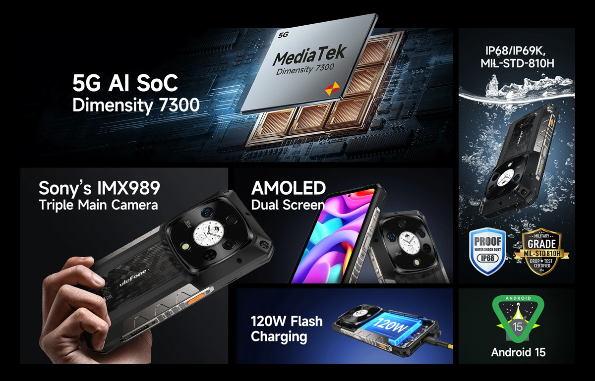 Ανακάλυψε το ULEFONE Armor 28 Pro, το απόλυτο rugged smartphone για απαιτητικούς χρήστες που χρειάζονται μέγιστη αντοχή και κορυφαία απόδοση. Με ενισχυμένη πιστοποίηση IP68/IP69K/MIL-STD-810H, αντέχει σε νερό, σκόνη, πτώσεις και ακραίες καιρικές συνθήκες.