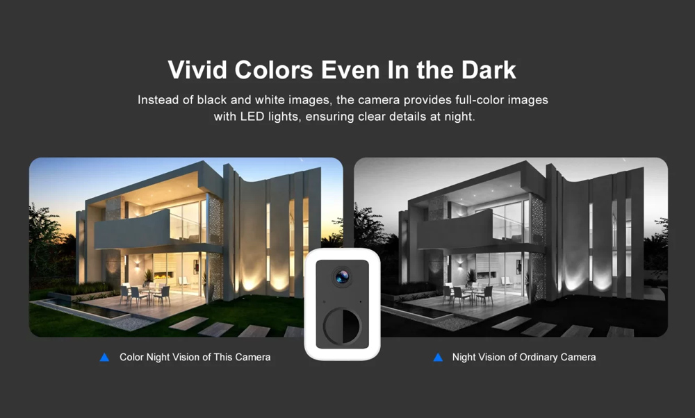 -Night vision: Black and white night vision, Automatic switching of IR-CUT, 6 pcs 850nm IR LED lights, full color night vision, 50 white lights, irradiation distance: 5~8m