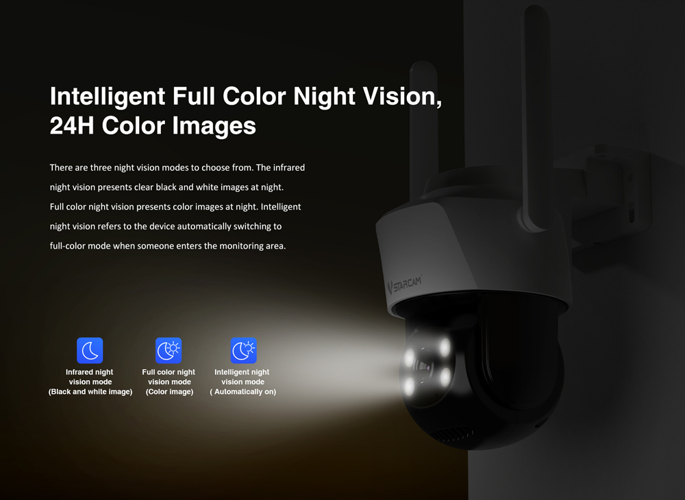 -Night vision: Black and white night vision, full-color night vision