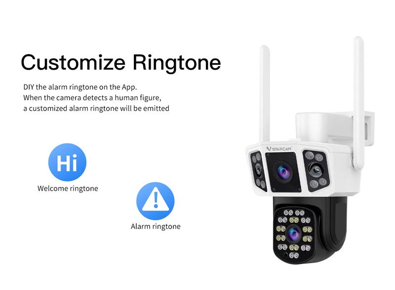 -Alarm detection: Motion detection, human detection, human framing, siren sound, and area detection