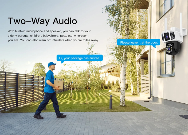 Ενσωματώνει 2 φακούς που επιτρέπουν μεγαλύτερη κάλυψη στον χώρο και υποστηρίζει PTZ λειτουργία που σας επιτρέπει την οριζόντια και κάθετη μετακίνηση της κάμερας μέσω της εφαρμογής.