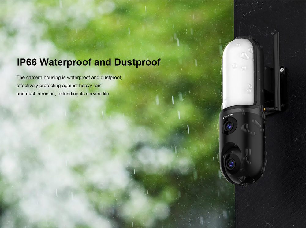 Ενσωματώνει 2 φακούς που επιτρέπουν μεγαλύτερη κάλυψη στον χώρο και υποστηρίζει PTZ λειτουργία που σας επιτρέπει την οριζόντια και κάθετη μετακίνηση της κάμερας μέσω της εφαρμογής.