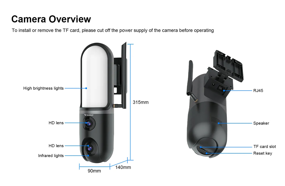 VSTARCAM smart κάμερα FC4 με φωτισμό, dual lens, 3MP, WiFi, SD, PTZ, IP66