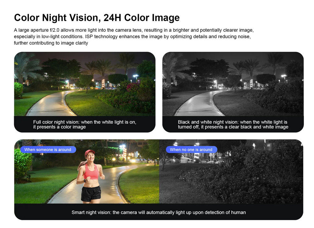 Μπορεί να ανιχνεύσει την ανθρώπινη σιλουέτα και κίνηση, στέλνοντας ειδοποιήσεις στο smartphone σας κάθε φορά που ανιχνεύεται κίνηση αλλά και να ενεργοποιήσει ηχητικό και οπτικό (με φως) συναγερμό.