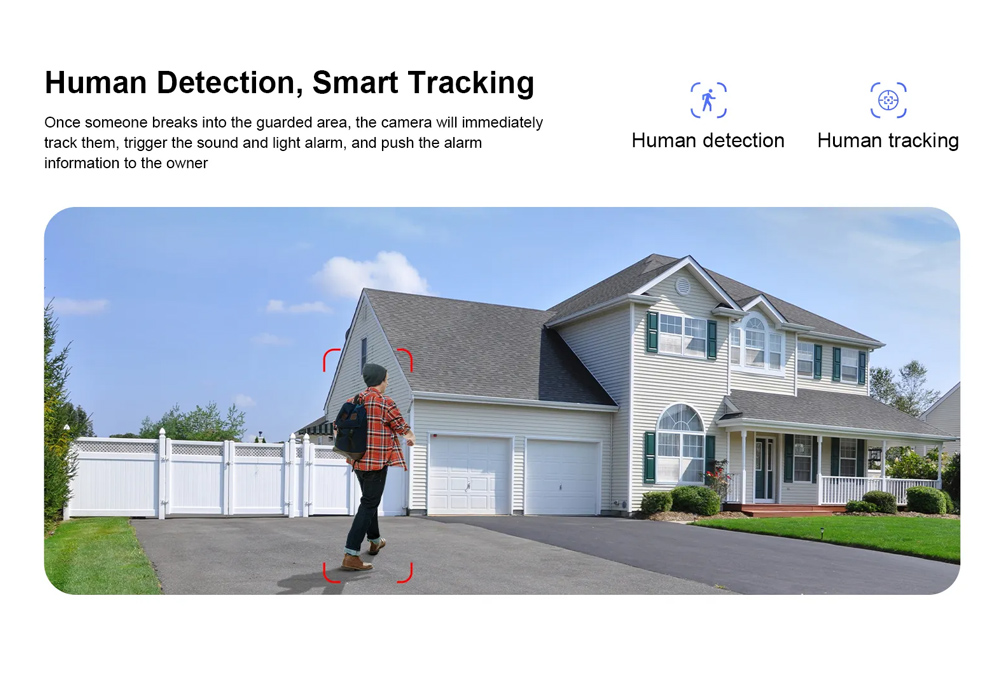 -Alarm detection: Motion detection, human detection, human framing, human tracking, and area detection, siren alarm